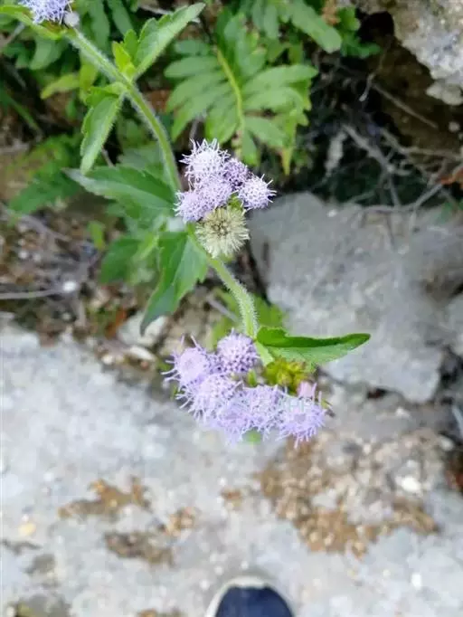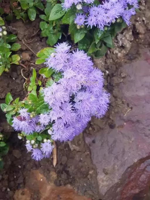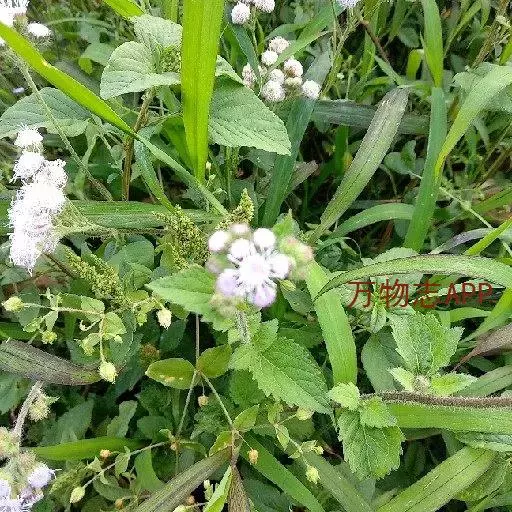 熊耳草(学名:Ageratum houstonianum Miller)菊科藿香蓟属植物,一年生草本,高30-70厘米或有时达1米,无明显主根,全部叶有叶柄,柄长0.7-3厘米,冠毛膜片状,5个,分离,膜片长圆形或披针形,顶端芒状长渐尖,有时冠毛膜片顶端截形,而无芒状渐尖,花果期全年。