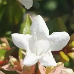 六道木(学名:Abelia biflora Turcz.)是忍冬科、六道木属落叶灌木,高可达3米;叶片矩圆形至矩圆状披针形,顶端尖至渐尖,基部钝至渐狭成楔形,上面深绿色,下面绿白色,边缘有睫毛;叶柄被硬毛。花单生于小枝上叶腋,无总花梗;花梗被硬毛;小苞片三齿状,花后不落;萼筒圆柱形,疏生短硬毛,萼齿狭椭圆形或倒卵状矩圆形,花冠白色、淡黄色或带浅红色,裂片圆形,花药长卵圆形;果实具硬毛,种子圆柱形,早春开花,8-9月结果。