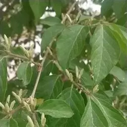 六道木 落叶灌木,高1-3米;幼枝被倒生硬毛,老枝无毛;叶矩圆形至矩圆状披针形,长2-6厘米,宽0.5-2厘米,顶端尖至渐尖,基部钝至渐狭成楔形,全缘或中部以上羽状浅裂而具1-4对粗齿,上面深绿色,下面绿白色,两面疏被柔毛,脉上密被长柔毛,边缘有睫毛;叶柄长2-4毫米,基部膨大且成对相连,被硬毛。
