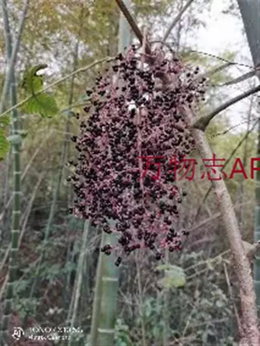 黄毛楤木 灌木,高1-5米;茎皮灰色,有纵纹和裂隙;新枝密生黄棕色绒毛,有刺;刺短而直,基部稍膨大。叶为二回羽状复叶,长达1.2米;叶柄粗壮,长20-40厘米,疏生细刺和黄棕色绒毛;托叶和叶柄基部合生,先端离生部分锥形,外面密生锈色绒毛;叶轴和羽片轴密生黄棕色绒毛;羽片有小叶7-13,基部有小叶1对;小叶片革质,卵形至长圆状卵形,长7-14厘米,宽4-10厘米,先端渐尖或尾尖,基部圆形,稀近心形,上面密生黄棕色绒毛,下面毛更密,边缘有细尖锯齿,侧脉6-8对,两面明显,网脉不明显;小叶无柄或有长达5毫米的柄,顶生小叶柄长达5厘米。圆锥花序大;分枝长达60厘米,密生黄棕色绒毛,疏生细刺;伞形花序直径约2.5厘米,有花30-50朵;总花梗长2-4厘米;苞片线形,长0.8-1.5厘米,外面密生绒毛;花梗长0.8-1.5厘米,密生细毛;小苞片长3-4毫米,宿存;花淡绿白色;萼无毛,长约2毫米,边缘有5小齿;花瓣卵状三角形,长约2毫米;雄蕊5,花药白色,花丝长2.5-3毫米;子房5室;花柱5,基部合生,上部离生。果实球形,黑色,有5稜,直径约4毫米。花期10月至次年1月,果期12月至次年2月。