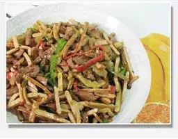 鱼香肉丝,是四川的一道特色名菜,该菜品以泡辣椒、泡姜、大蒜、黄葱、生姜和醋炒制猪里脊肉丝而成,…