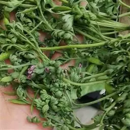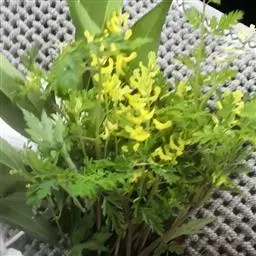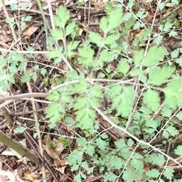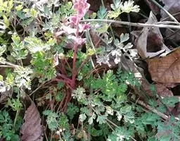土元胡 瘦弱多年生草本,高9-20厘米。块茎球形,直径约6-8毫米。茎纤细,基部以上具1鳞片,鳞片腋内常具1-3分枝,叶生于鳞片以上,有时少数生于鳞片腋内,下部的茎生叶腋常具退化的腋生小叶。叶二回三出,具长的叶柄和小叶柄,小叶椭圆形,全缘,有时深裂成倒卵形的裂片,下部苍白色,约长8-14毫米,宽4-12毫米。