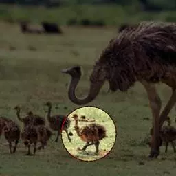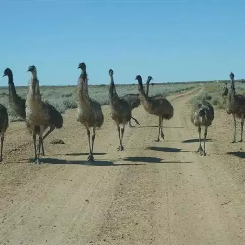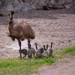 鸸鹋喜爱生活在草原、森林和沙漠地带,全身披着褐色的羽毛,擅长奔跑,时速可达70千米,并可连续飞跑上百公里之遥。鸸鹋虽有双翅,但同鸵鸟一样已完全退化,无法飞翔。躯干、翼被覆纤细的粗发状羽毛,呈灰褐色。以野草、种子、果实等植物及昆虫、蜥蜴等小动物为食。它能泅水,可以从容渡过宽阔湍急的河流。