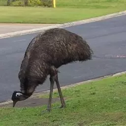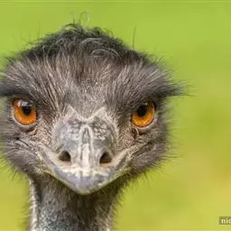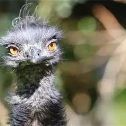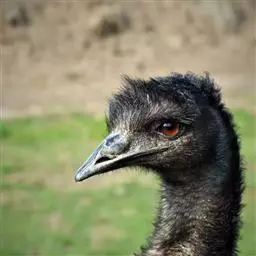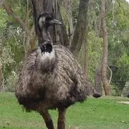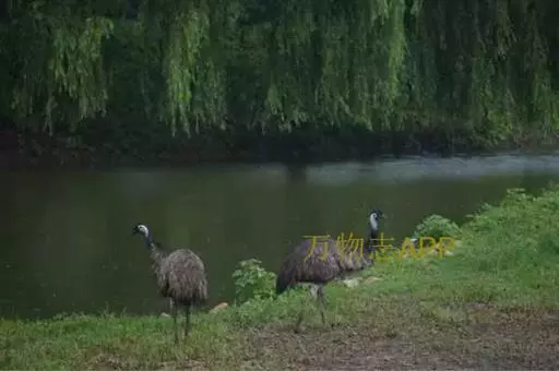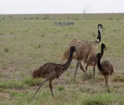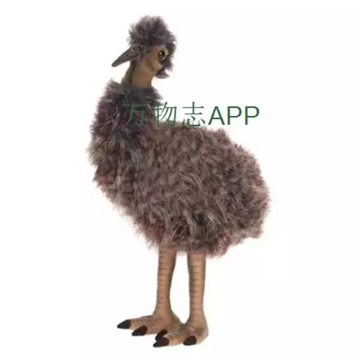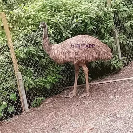 鸸鹋 [ér miáo](学名:Dromaius novaehollandiae):是鸟纲鸸鹋科唯一物种,体高150-185厘米,体重30-45千克,寿命10年。以擅长奔跑而著名,是大洋洲的特产,是世界上第二大的鸟类,仅次于非洲鸵鸟,因此也被称作澳洲鸵鸟。成年雌性比雄性大。鸸鹋形似非洲鸵鸟而较小,属于平胸类,没有龙骨,嘴短而扁,羽毛灰色、褐色或黑色,长而卷曲自颈部向身体的两侧覆盖。翅膀退化,完全无法飞翔。翅膀比非洲鸵鸟和美洲鸵鸟的更加退化,足三趾,是世界上最古老的鸟种之一。