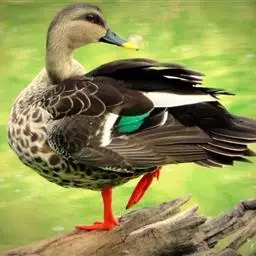 斑嘴鸭是雁形目鸭科鸭属鸟类。李文华,旭日干,中国自然资源通典 辽宁卷,内蒙古教育出版社,2015,第361页雄鸟体羽大部棕褐色;嘴蓝黑色,先端黄色,嘴基至耳区贯眼线黑褐色;虹膜黑褐色,外圈橙黄色;眉纹黄白色,头顶、额、枕部暗棕褐色;上背灰褐色,下背褐色;翼镜蓝绿色带紫色金属光泽;胸部棕白色杂褐色斑,腹褐色;腰、尾上覆羽、尾羽黑褐色,尾下覆羽黑色;跗蹠和趾棕黄色,爪黑色。雌鸟嘴端黄斑不明显,下体自胸以下淡白色,杂暗色斑。因嘴端有黄斑而得名。斑嘴鸭分布于中国各省区,栖息于河流、湖泊、水塘及沼泽等湿地中。善游泳、行走,游泳时尾露出水面,除繁殖期外,常成群活动,也和其他鸭类混群。主食植物的种子、嫩芽和幼苗等植物性食物,也食昆虫、软体动物等动物性食物。繁殖期5—7月,以干草和绒羽在岸边草丛中做巢,1年繁殖1窝,每窝产卵8—14枚,孵化期24天。斑嘴鸭被列入中国国家林业局2000年8月1日发布的《国