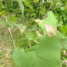 杠板归,一年生攀援草本。其茎略呈方柱形,有棱角,多分枝,直径可达0.2cm;表面紫红色或紫棕色,棱角上有倒生钩刺,节略膨大,节间长2~6cm,断面纤维性,黄白色,有髓或中空。叶互生,有长柄,盾状着生;叶片多皱缩,展平后呈近等边三角形,灰绿色至红棕色,下表面叶脉和叶柄均有倒生钩刺;托叶鞘包于茎节上或脱落。短穗状花序顶生或生于上部叶腋,苞片圆形,花小,多萎缩或脱落。气微,茎味淡,叶味酸。常生于山谷、灌木丛中或水沟旁。