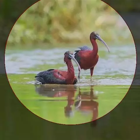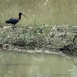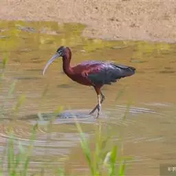 彩鹮(学名:Plegadis falcinellus):是鸟纲、鹮科、彩鹮属的鸟类。体长48-66厘米,翼展80-95厘米,体重485-580克。 是深栗色带闪光的鹮,看似大型的深色杓鹬,上体具绿色及紫色光泽;虹膜褐色;嘴近黑色;脚绿褐色;脸部裸露,裸皮及眼圈铅色;颈、上背、肩和最内侧翼上覆羽色深。头部除面部裸出外皆被羽,体羽大部为青铜栗色。叫声是带鼻音的咕哝声,于巢区发出咩咩及咕咕的叫声。