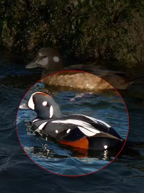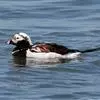 长尾鸭体长约58厘米,是中等体型的灰、黑及白色鸭,中央尾羽特长,雄鸟胸部的黑色斑块为特征。…
