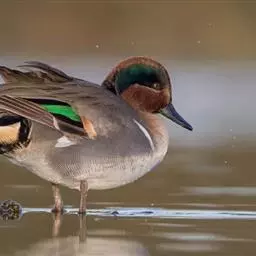 绿翅鸭是小型鸭类,体长37厘米,体重约0.5千克。嘴脚均为黑色。雄鸟头至颈部深栗色,…