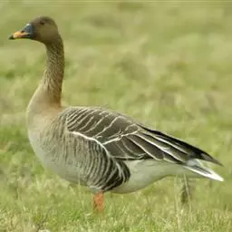豆雁,雁形目鸭科。成鸟头、颈、背灰褐色,带淡黄色羽缘;尾上覆羽白色,尾羽黑褐色带白端,…