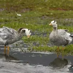 斑头雁是雁形目鸭科雁属鸟类,又称白头雁、黑纹头雁。通体大都灰褐色,头和颈侧白色,…