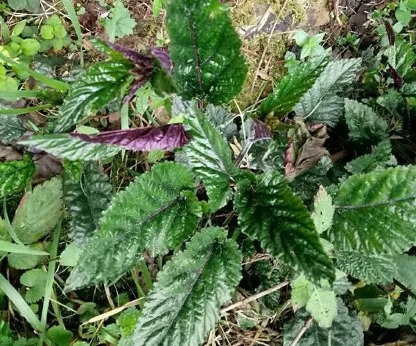 血盆草 原变种为贵州鼠尾草。这一变种与原变种不同在于叶全部基出或稀在茎最下部着生,通常为单叶,心状卵圆形或心状三角形,稀三出叶,侧生小叶小,叶片长3.5-10.5厘米,宽约为长之1/2,先端锐尖或钝,具圆齿,无毛或被疏柔毛,叶柄常比叶片长,无毛或被开展疏柔毛;花序被极细贴生疏柔毛,无腺毛;花紫色或紫红色。