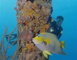 额斑刺蝶鱼,体卵圆形侧扁,有鲜明蓝色轮廓和数条鲜蓝竖纹,全身密布网格状具蓝色边缘的珠状黄点,深蓝色…