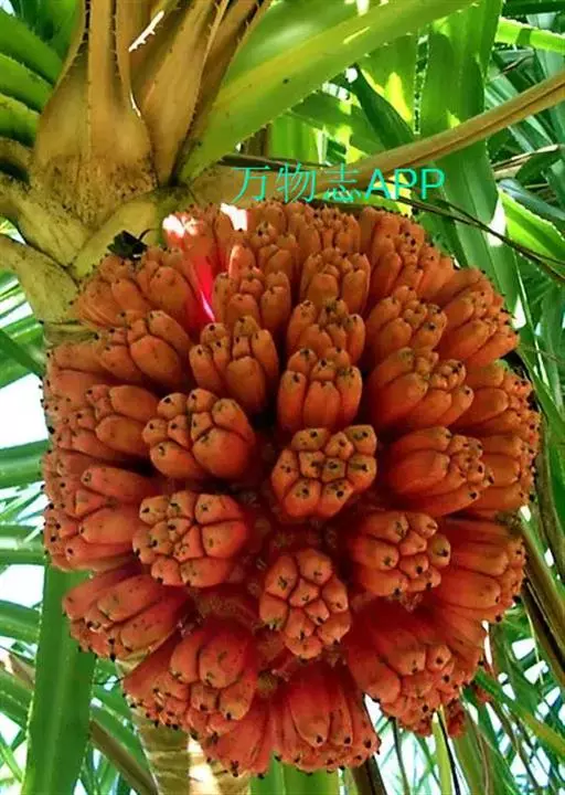 雄花序由若干穗状花序组成,每一穗状花序长约5厘米;佛焰苞长披针形,长10-26厘米,宽1.5-4厘米,近白色,先端渐尖,边缘和背面隆起的中脉上具细锯齿;雄花芳香,雄蕊常为10余枚,多可达25枚,着生于长达9毫米的花丝束上,呈总状排列,分离花丝长约1毫米,花药条形,长3毫米,宽0.6毫米,基着药,药基心形,药隔顶端延长的小尖头长1-1.5毫米;雌花序头状,单生于枝顶,圆球形;佛焰苞多枚,乳白色,长15-30厘米,宽1.4-2.5厘米,边缘具疏密相间的细锯齿,心皮5-12枚合为一束,中下部联合,上部分离,子房上位,5-12室,每室有1颗胚珠。聚花果大,向下悬垂,由40-80个核果束组成,圆球形或长圆形,长达17厘米,直径约15厘米,幼果绿色,成熟时桔红色;核果束倒圆锥形,高约5厘米,直径约3厘米,宿存柱头稍凸起呈乳头状、耳状或马蹄状。花期1-5月。