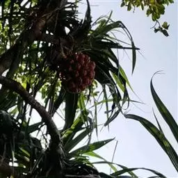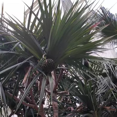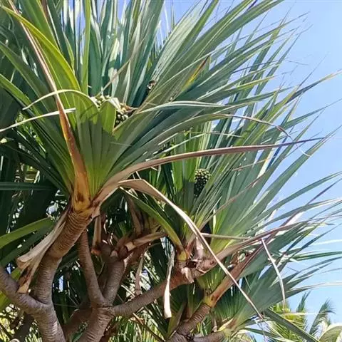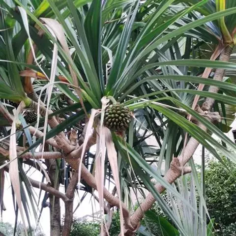 露兜树(学名:Pandanus tectorius Sol.)是露兜树科,露兜树属常绿分枝灌木或小乔木,常左右扭曲,叶簇生于枝顶,叶片条形,长可达80厘米,叶缘和背面中脉均有粗壮的锐刺。雄花序由若干穗状花序组成,佛焰苞长披针形,近白色,雄花芳香,花药条形,药基心形,雌花序头状,单生于枝顶,圆球形;佛焰苞多枚,乳白色,幼果绿色,成熟时桔红色;核果束倒圆锥形,1-5月开花。