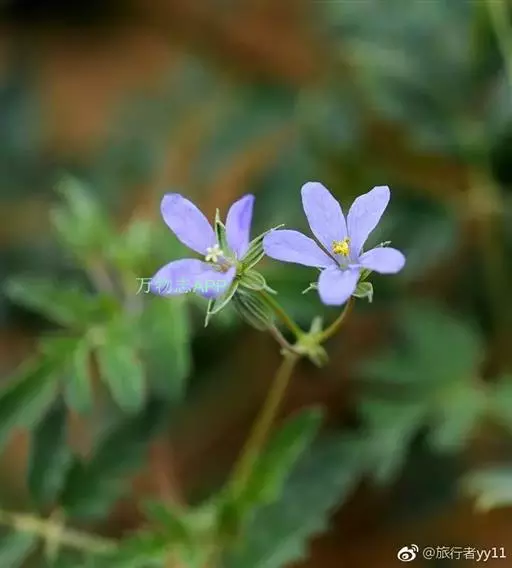 尖喙牻牛儿苗(Erodium oxyrhinchum M. Bieb.),为牻牛儿苗科植物。一年生草本,全株被灰白色柔毛,叶片长卵形或三角状卵形,边缘具不整齐的圆齿;总花梗腋生或顶生,萼片椭圆形或椭圆状卵形,倒卵形花瓣紫红色,蒴果椭圆形;喙长达7-9厘米,易脱落,成熟裂开后呈羽毛状。