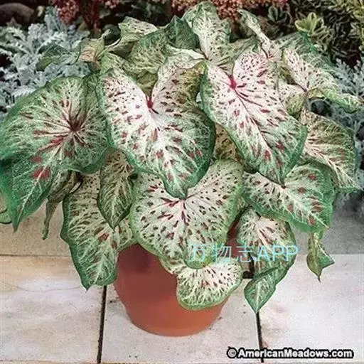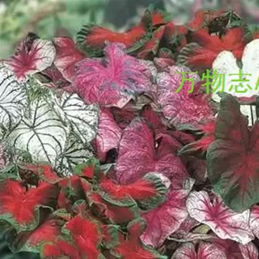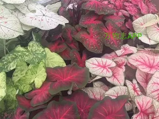 另外有小叶彩叶芋,叶小,卵圆心形,叶脉深绿色,叶面具乳白色不规则斑纹。