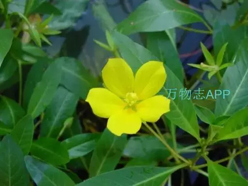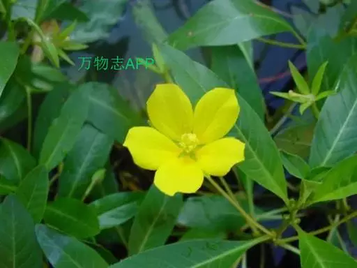 黄花水龙是生长在浅水 黄花水龙 的多年生浮叶植物,长可达5公尺,以不定芽繁殖。具匍匐茎或浮生茎,整株蔓生或挺立生长,整株无毛,茎中空,节间簇生白色气囊(气生根)。叶互生,长椭圆形,叶托大。花开于枝顶,腋生,萼片5枚,呈三角形,长6-12mm,花瓣5枚,金黄色,长9-17mm,雄蕊10。不结实。主要生分布於河川流水域边或低洼湿地。黄花水龙是多年生挺水型草本植物,花开在枝顶,呈黄色。城区河道种植的黄花水龙整朵花直径在5厘米左右,开花时间为每年5—6月。