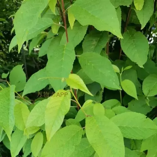 叶片椭圆形、长圆形或长圆倒卵形,长4-10厘米,宽2-4.5厘米,先端尾尖,基部圆形或宽楔形,边缘有不规则锐锯齿,有时混有重锯齿,上面深绿色,下面淡绿色,两面无毛;下面中脉和侧脉均突起;叶柄长1-1.5厘米,幼时被短绒毛,以后脱落近无毛,顶端两侧各具1腺体;托叶膜质,线形,先端渐尖,边有带腺锯齿,早落。
