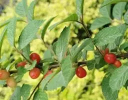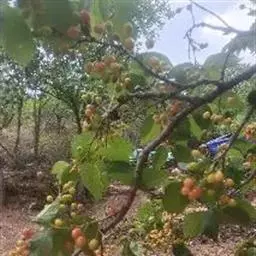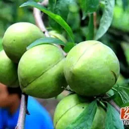 核果卵球形,顶端有尖头,直径8-10毫米,红褐色至黑色,光滑,果梗无毛;萼片脱落;核有褶皱。花期4-5月,果期5-10月。