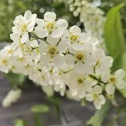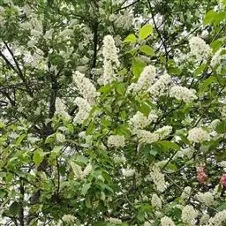 稠李(学名:Padus racemosa (Linn.) Gilib.)是蔷薇科稠李属植物,落叶乔木,高可达15米;树皮粗糙而多斑纹,老枝紫褐色或灰褐色,有浅色皮孔;叶片椭圆形、长圆形或长圆倒卵形,托叶膜质,线形,先端渐尖,边有带腺锯齿,早落。总状花序具有多花,长7-10厘米,基部通常有2-3叶。核果卵球形,顶端有尖头,花期4-5月,果期5-10月。