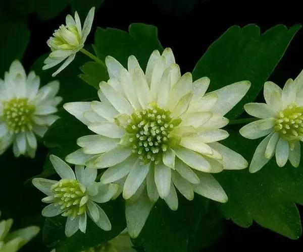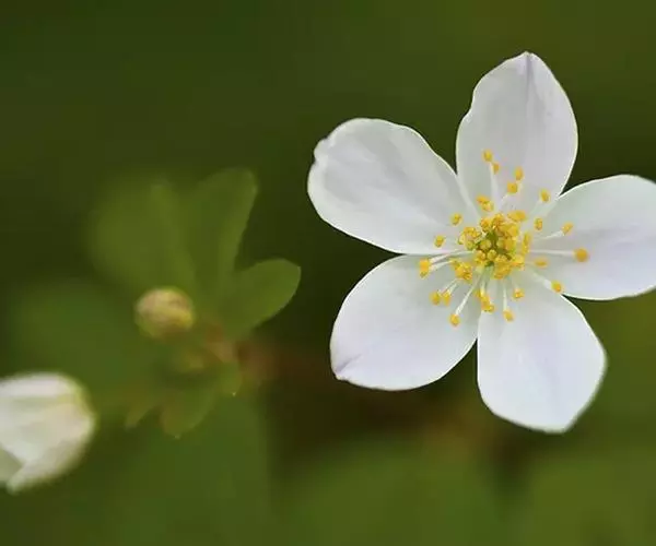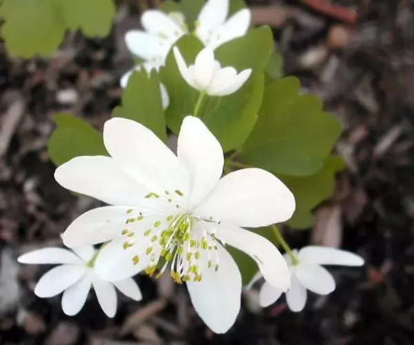 花序圆锥状,两叉状分枝,有多少密集的花;花梗长4-5毫米;萼片4,白色,倒卵形,船形,长约3毫米,宽约2毫米,早落;雄蕊多数,长2-5毫米,花药黄色,长椭圆形,长0.5-0.8毫米,顶端钝,花丝比花药窄或近等宽,上部棒形,下部丝形;心皮12-16,长约1毫米,花柱比子房稍短,直或上部稍弯,在腹面上部生柱头组织。