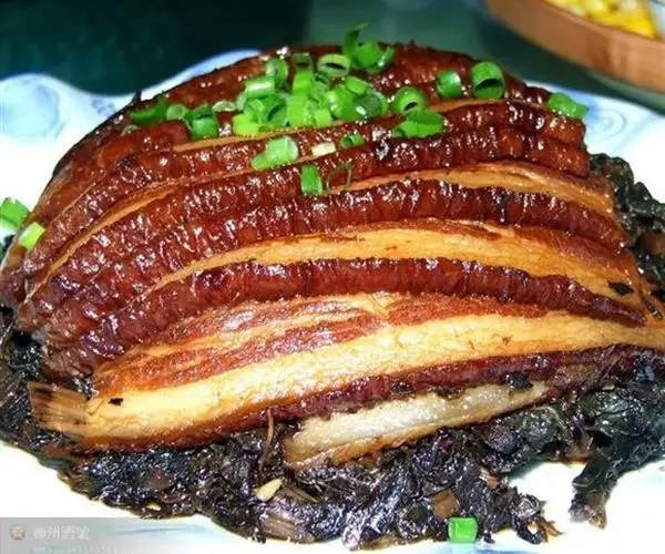 梅菜扣肉(英文名:Pork with salted vegetable),汉族传统名菜,属客家菜 。制作材料有五花肉、梅菜、葱白、姜片等。