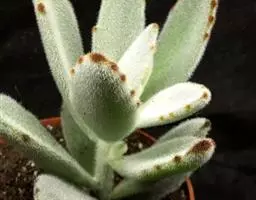 褐斑伽蓝是景天科、伽蓝菜属多年生肉质草本植物或小灌木。全株灰白色,密布白色茸毛。叶片长卵形,…