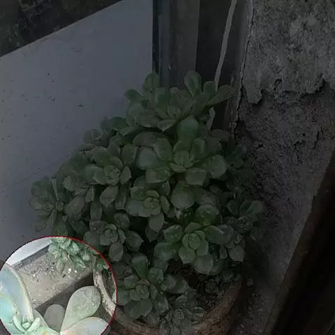 多年生肉质植物,又名舌洋吊钟。其茎粗壮,茎呈灰白色,植株多分枝,叶片倒卵形,对生,排列紧密,叶色呈淡绿色或黄绿色,被有浓厚的白粉,当春秋季阳光充足时,叶缘会变成红色。春季开花,花小,筒状,花色黄色 。