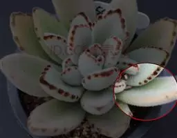 叶片互生,排列成延长的莲花座,叶片呈倒卵型。有叶尖,叶尖红色。出状态后十分漂亮。