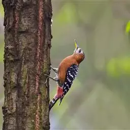 棕腹啄木鸟为啄木鸟科,啄木鸟属是中等体型的鸟类,体长约20厘米。头顶部具红色斑带。脚强健,有趾4个,…