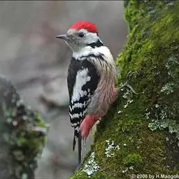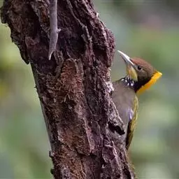 三趾啄木鸟,是啄木鸟科、啄木鸟属的小型鸟类,体长20-23厘米,雄鸟头顶金黄色,雌鸟黑色而具白色斑点。…