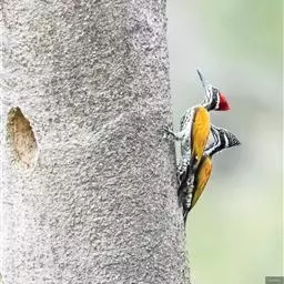 大斑啄木鸟隶属鸟纲鴷形目啄木鸟科。雄鸟头顶黑色,枕部红色,眼先、颊部和耳羽白色,颈部污白色,…