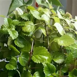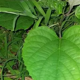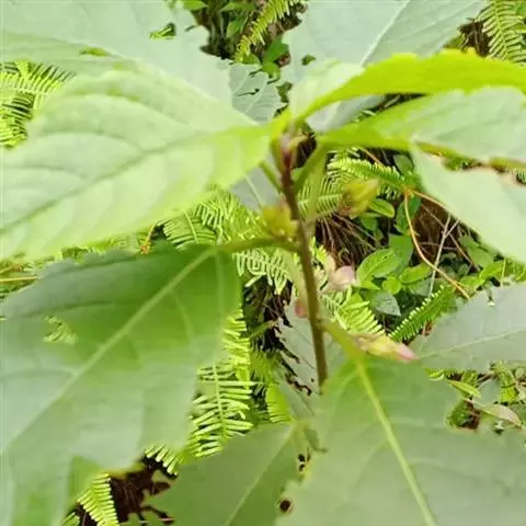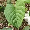 叶片宽卵形或近于心形,长9-22厘米,宽8-21厘米,顶端渐尖,基部截形,宽楔形或浅心形,边缘疏生粗齿,表面密被刚伏毛,背面密被柔毛,沿脉更密或有时两面毛较少,基部三出脉,脉腋有数个盘状腺体,叶片揉之有臭味;叶柄长3-17厘米,被短柔毛,有时密似绒毛。