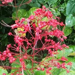 烟火树 Merr.)是唇形科、大青属常绿灌木或小乔木,株高可达4米。幼枝方形,墨绿色。叶对生,…