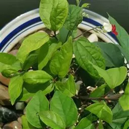 龙吐珠,唇形科灌木,幼枝四棱形,被黄褐色短绒毛,老时无毛。叶片纸质,狭卵形或卵状长圆形,顶端渐尖,…
