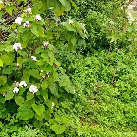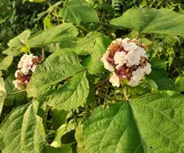 植物体被毛较密,伞房状聚伞花序较密集,花较多,苞片较多,花单瓣,较大,花萼长1.3-2.5厘米,萼裂片披针形,长1-1.6厘米,花冠白色或淡红色,花冠管长2-3厘米,裂片椭圆形,长约1厘米。核果近球形,径8-10毫米,成熟时蓝黑色。宿萼增大包果。花果期5-11月。