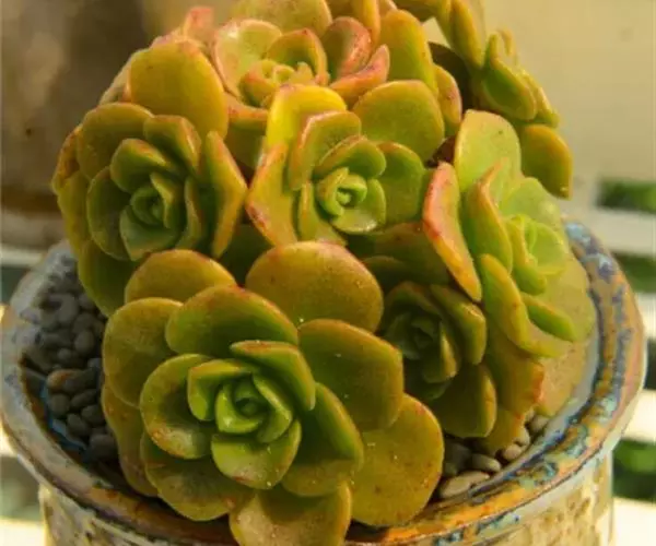 夕映爱又名清盛锦、艳日晖、灿烂、雅宴曲,景天科莲花掌属植物,多用于园林盆景和家居植物摆设。