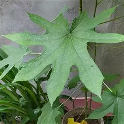 苘麻锦葵科苘麻属一年生亚灌木草本植物。茎秆较高,上面有柔毛;叶子较大且有纹路,浅绿色,边缘不平整,…