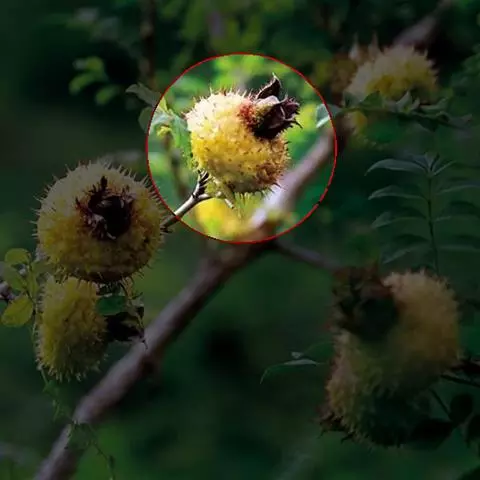 果球形,密被黄褐色柔毛,果梗短,密被柔毛。花期5-7月,果期8-11月。
