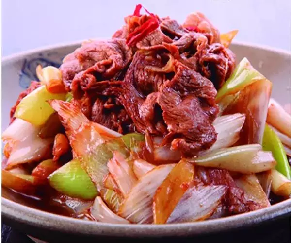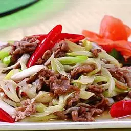 葱爆羊肉 (Sautéed Lamb Slices with Scallion),属于北京菜,是北京菜中的经典之一。具有补阳、壮腰健肾、补虚养身之功效。羊肉滑嫩、鲜香不膻、汪油包汁、食后回味无穷。 肉嫩、略带葱香味。