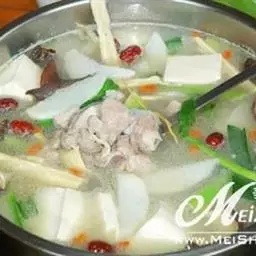 羊肉(后腿):羊肉肉质细嫩,容易消化,高蛋白、低脂肪、含磷脂多,较猪肉和牛肉的脂肪含量都要少,胆固醇含量少,是冬季防寒温补的美味之一;羊肉性温味甘,既可食补,又可食疗,为优良的强壮祛疾食品,有益气补虚,温中暖下,补肾壮阳,生肌健力,抵御风寒之功效。