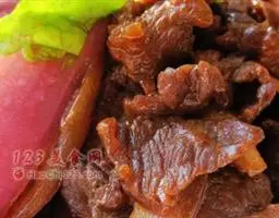 1.羊肉用酱油、味精、淀粉抓拌,腌10分钟后倒出多余汁料,沥干。