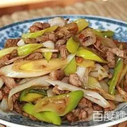 “葱爆羊肉”是老北京的一道传统菜肴,其烹制的功夫主要是在火候和调料的搭配上。这道菜吃的原本是羊肉的味道,如在制作中画蛇添足反而不好。 葱爆羊肉,主要突出一个“爆”字,肉下锅后要用猛火快速把肉爆熟,才是最地道的制作葱爆羊肉的正确方法。因为家庭中使用的灶具比较小火力达不到,如制作超过一斤以上的羊肉火力会立即降低,肉很容易出汤,所以菜的质量很不好掌握。其实,只要掌握三点就可以达到很高的的质量,一是羊肉以不超过300克为宜,量不要大,二是把肉用调料提前拌匀码味,三是把锅烧热,肉下锅后用高火猛炒数下,肉断生便立即出锅,这样便可保证菜的质量。其实,爆炒的过程关键就在于炒菜时的速度。 葱爆羊肉,一般选择羊的后腿肉切片。羊肉片切的不可太薄,大约有一分硬币的薄厚就可以,那样味道会更浓香。大葱,要选择大葱的葱白部位,先用刀把葱白切成滚刀块,然后用手把葱块的每层葱皮剥开,使其呈松散的片状,这样便于受热均匀熟的也快,用这种处理大葱的方法,使葱下锅后可立即断生还不易塌秧,吃起来还会有清脆感。
