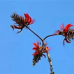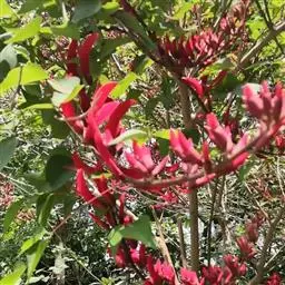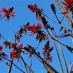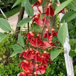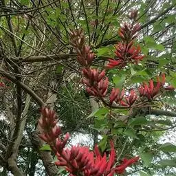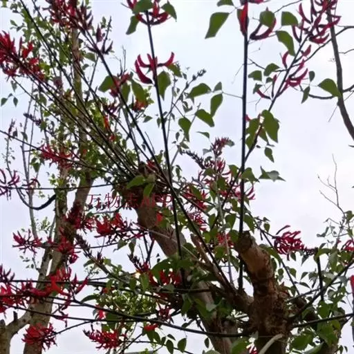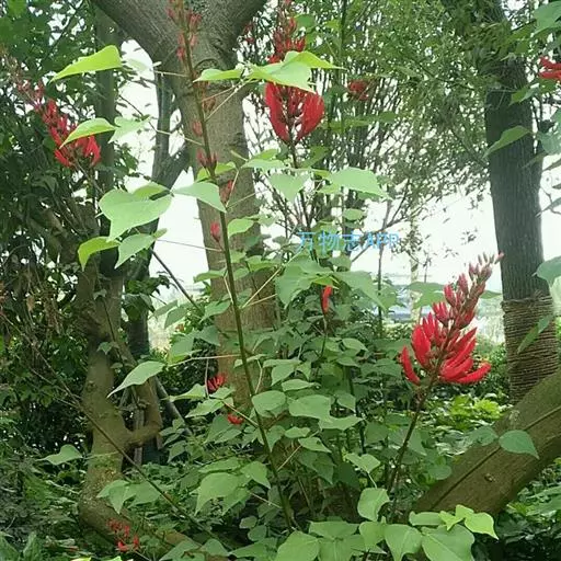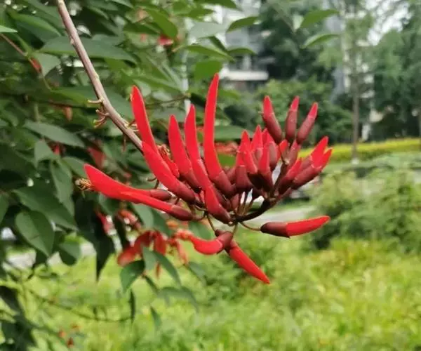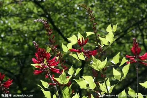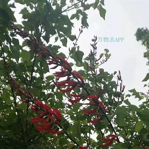 龙牙花红叶扶疏,初夏开花,深红色的总状花序好似一串红色月牙,艳丽夺目,适用于公园和庭院栽植,若盆栽可用来点缀室内环境。是阿根廷国花。(概述图片参考资料来源: )