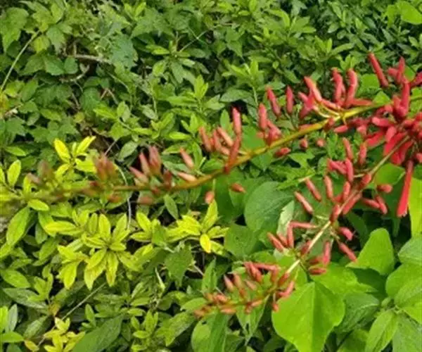 龙牙花是灌木或小乔木植物,高3-5米。干和枝条散生皮刺。羽状复叶具3小叶;小叶菱状卵形,长4-10厘米,宽2.5-7厘米,先端渐尖而钝或尾状,基部宽楔形,两面无毛,有时叶柄上和下面中脉上有刺。