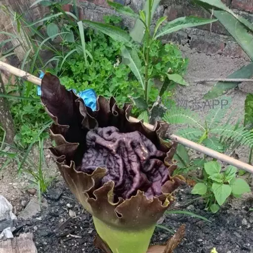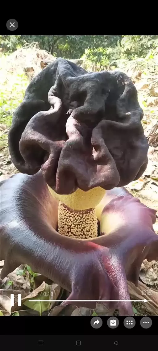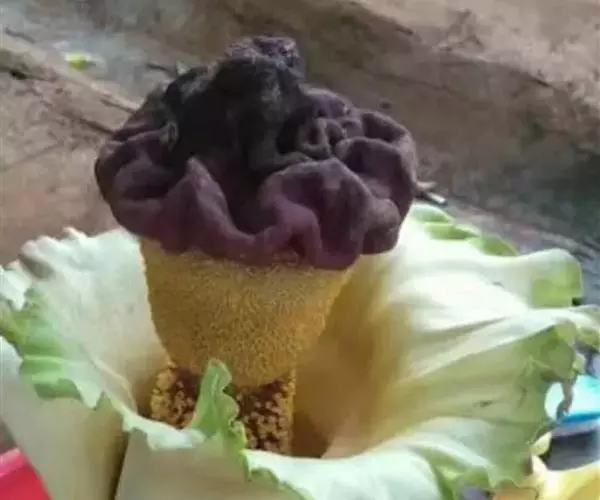 世界著名臭花——疣柄魔芋在武汉植物园开花