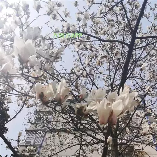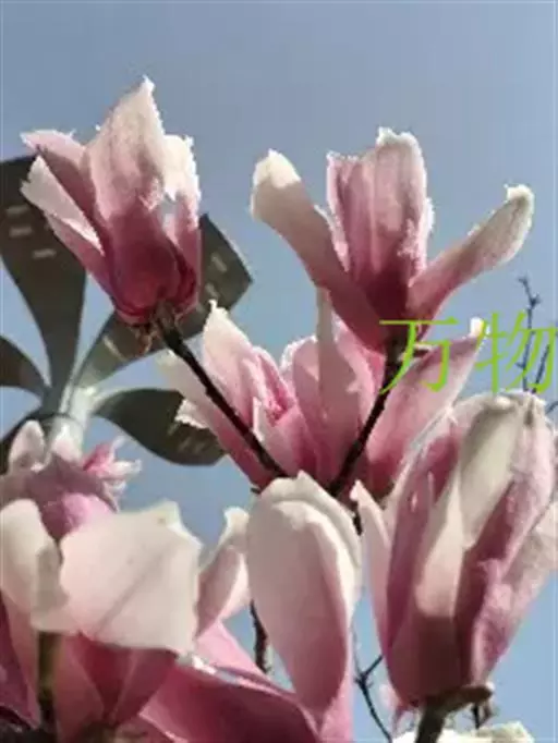 ‘大花’白玉兰(Magnolia denudata‘DaHua’)。落叶乔木。花白色,基部淡红色或向上延伸成红色脉纹,盛开时花被片近平展,略外卷。花被片9枚,内外几同形或外轮花被片线状。花期3月,果熟期8月。叶色浓绿,落叶期比其他白玉兰晚0.5-1个月。