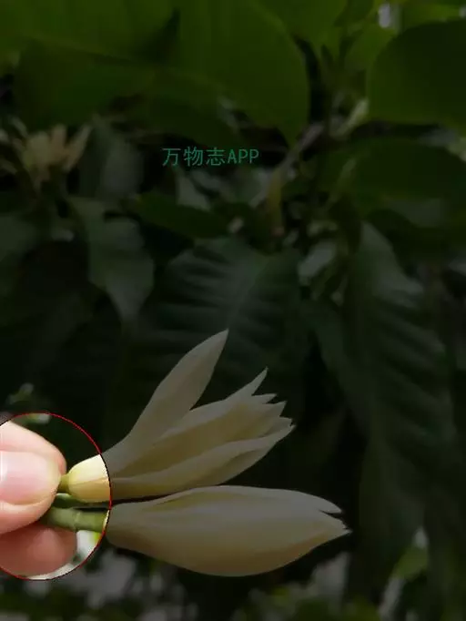 ‘香蕉’玉兰(Magnolia denudata ‘Xiangjiao’)。落叶小乔木,株型紧凑。花白色,花蕾初开时弯曲如香蕉状。花被片9枚,内外几同形。花期3月。果期9月。