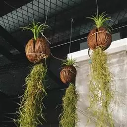 可用铁丝、铜丝、竹条等韧性材料弯成带钩的圆圈,在凤梨、铁兰成株上截取数段,悬挂于圈上即可;亦可以直接缠挂在木本植物、花卉或竹类等多年生植物的枝条上;即使悬挂于住宅或办公室类的各种支架物上,亦可正常生长。